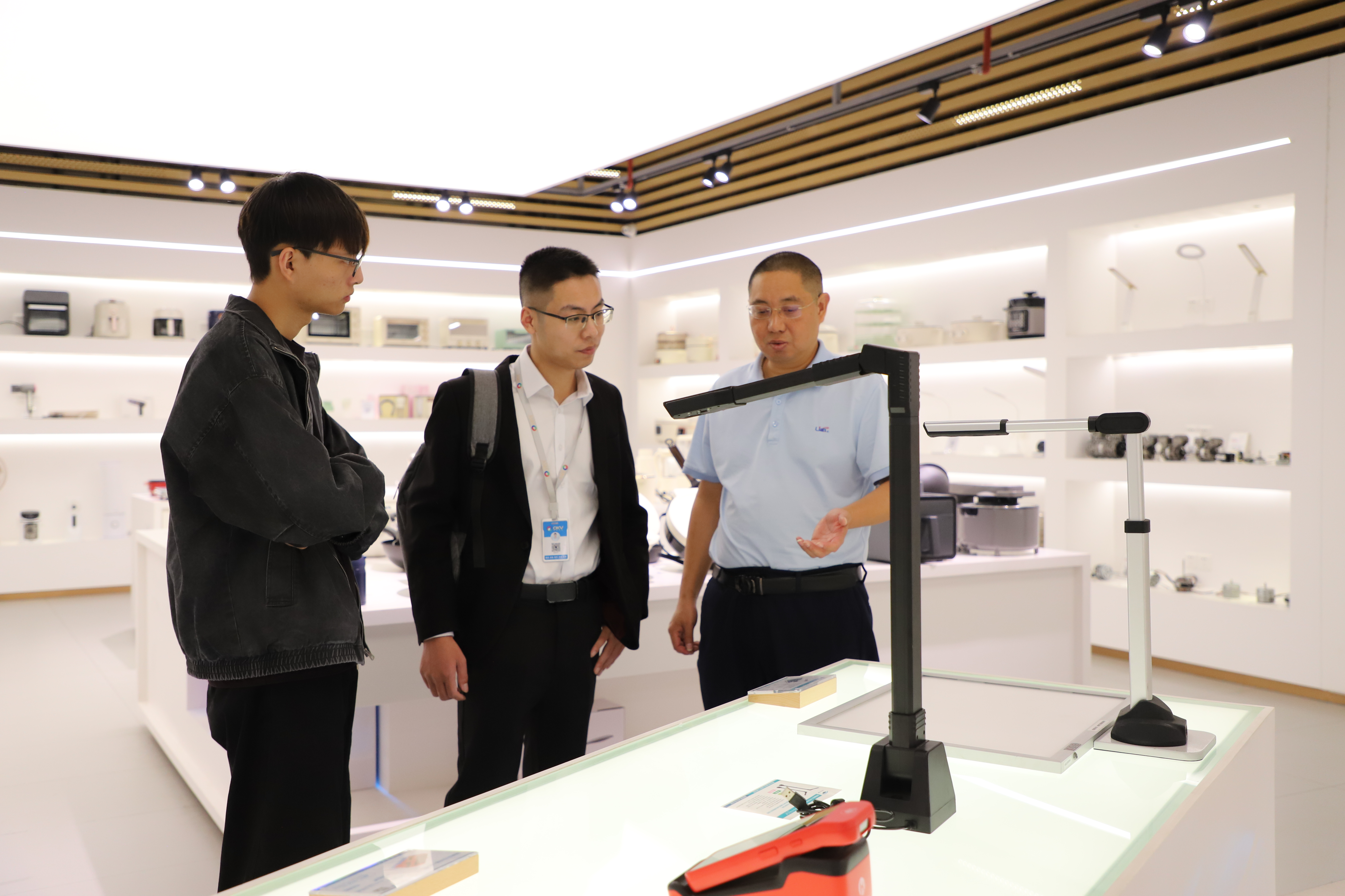 本次訪問活動在友好熱烈的氛圍中展開。新良田科技團隊熱情接待了可視科技團隊,并陪同參觀了聯創科技大廈三樓的企業展廳。來訪嘉賓深入了解了聯創科技集團的發展歷程、榮譽資質、專利成果,以及新良田在高拍儀、視頻展臺等智能采集設備方面的技術積累與產品矩陣,現場體驗了多款旗艦產品的實際應用效果。