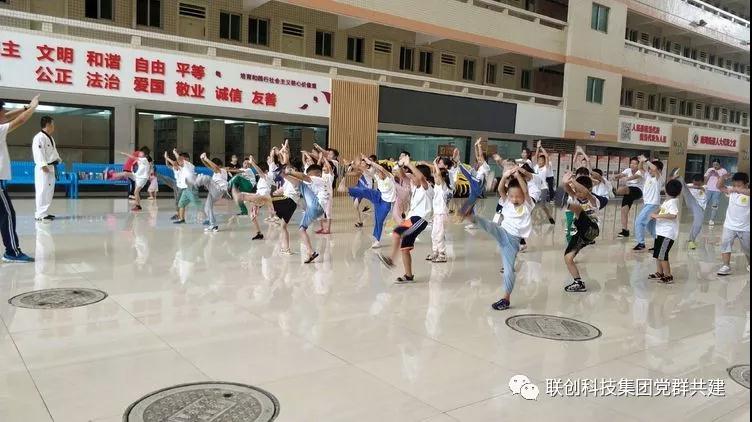 早上孩子們陸陸續續的來到了聯創科技園區內,熱情的與老師打著招呼。等待著孩子們的將會是揮灑汗水的一個上午,我們將開始跆拳道的基礎練習。所謂跆拳道是現代奧運會正式比賽項目之一,是一種主要使用手及腳進行格斗或對抗的運動。